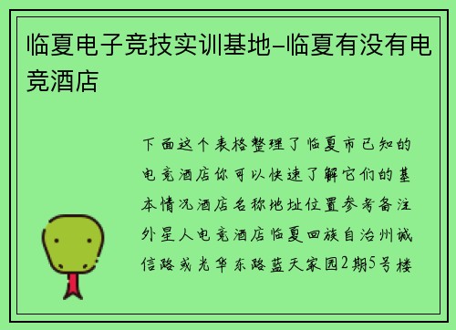 临夏电子竞技实训基地-临夏有没有电竞酒店