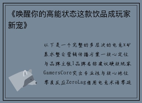 《唤醒你的高能状态这款饮品成玩家新宠》