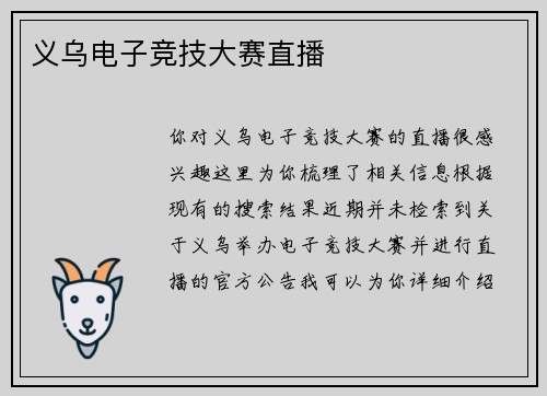 义乌电子竞技大赛直播